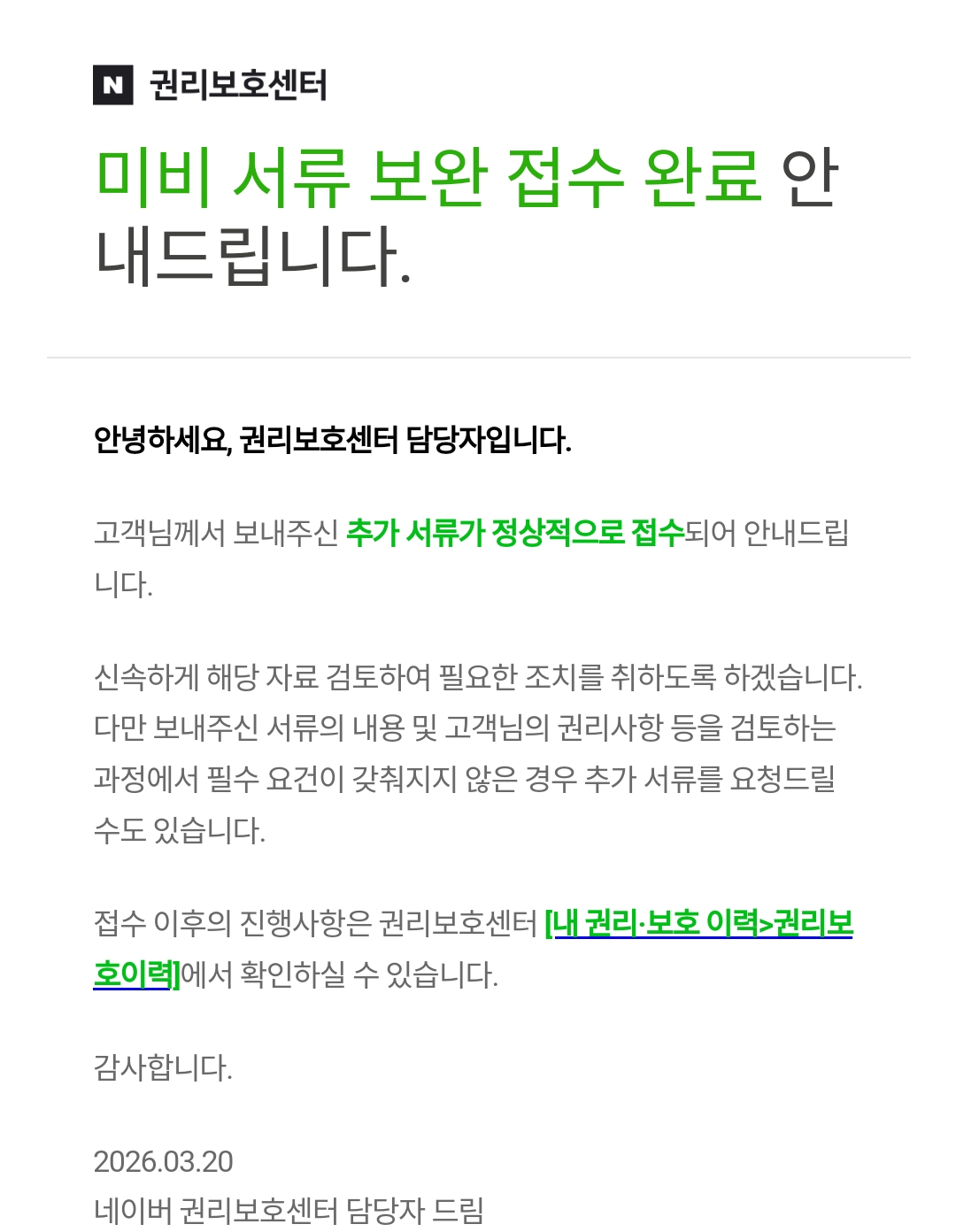 내 원본 글 작성 플랫폼이 티스토리라 더 까다롭게 구는 것도 있고, 보지도 않고 5번 반려 후 드디어 도용자의 네이버 블로거 게시글 중단됐다는 네이버 권리보호센터로 부터 메일 받음.